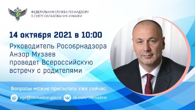 В ходе встречи руководитель Рособрнадзора и специалисты ведомства ответят на вопросы, касающиеся организации и проведения ЕГЭ и ГИА-9, всероссийских проверочных работ (ВПР), международных и национальных исследований качества образования, количества контрольных работ в школах, новой системы аккредитации вузов и других актуальных тем.