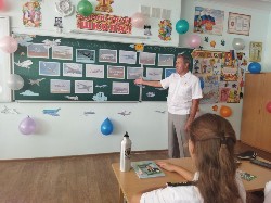 В нашей школе прошли тематические мероприятия, посвященные Дню космонавтики: торжественная линейка с участием Героя Российской Федерации, летчиком-испытателем 1-го класса Кнышовым Анатолием Николаевичем, классные часы. Ребята на классных часах знакомились с информацией, об истории возникновения этого праздника, о человеке, покорившем космическое пространство – Юрии Гагарине, первой женщине-космонавте Валентине Терешковой, о том как четвероногие друзья человека проложили путь к звездам, о планетах больших и маленьких. Знания, полученные на внеклассных мероприятиях, дети закрепили в своих творческих работах и рисунках.