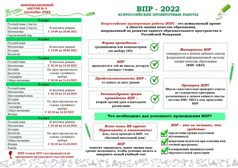 Порядок проведения ВПР осенью 2022 года