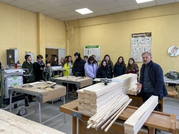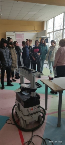 Была организована экскурсия по учебно-производственным мастерским колледжа, в ходе которой ребята увидели процесс работы обучающихся колледжа в мастерской штукатурных и облицовочных работ, столярной и сварочной мастерских, а также подготовку к демонстрационному экзамену в рамках промежуточной аттестации по ландшафтному дизайну и малярным и декоративным работам.