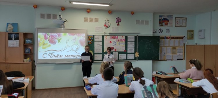 26 ноября 2021 года в школе прошли классные часы, посвящённые Дню Матери. Ребята говорили тёплые слова в адрес своих мам, пели песни, рассказывали об истории праздника.