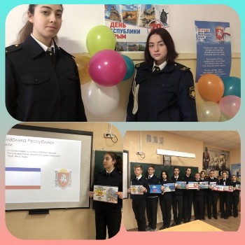 ðàìêàõ ïðîâåäåíèÿ Åäèíîãî óðîêà ñ ó÷àùèìèñÿ 6- êëàññà áûë ïðîâåäåí óðîê "Äåíü Ðåñïóáëèêè Êðûì" ñ ó÷àñòèåì ïîäïîëêîâíèêà â çàïàñå Ðåíãà÷ À.Þ. Ðåíãà÷ À.Þ. ðàññêàçàë äåòÿì îá èñòîðèè ôîðìèðîâàíèÿ Ðåñïóáëèêè Êðûì. Äàííîå ìåðîïðèÿòèå ñïîñîáñòâîâàëî ðàçâèòèþ ÷óâñòâà ãðàæäàíñòâåííîñòè, îòâåòñòâåííîñòè, ãîðäîñòè çà ñâîþ Ðîäèíó, íàöèîíàëüíîé ñîçíàòåëüíîñòè, áåðåæíîãî îòíîøåíèÿ ê êóëüòóðíîìó íàñëåäèþ ñâîåé Ðîäèíû.