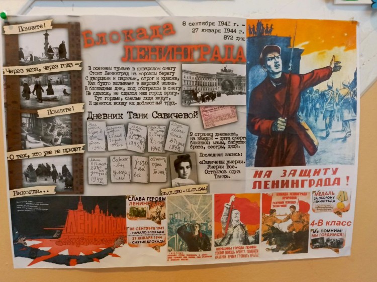 Íà çàíÿòèè ðåáÿòà ðàñøèëè ñâîè çíàíèÿ î áëîêàäå Ëåíèíãðàäà è åãî îñâîáîæäåíèè, ïîçíàêîìèëèñü ñ ôàêòàìè î æèçíè ëþäåé áëîêàäíîãî ãîðîäà, â ÷àñòíîñòè î òîì, êàê ó÷èëèñü äåòè â ýòî âðåìÿ è êàê âîññòàíàâëèâàëñÿ ãîðîä.  êîíöå çàíÿòèÿ ðåáÿòà ïîñìîòðåëè ðîëèê èç êèíîõðîíèêè «Ñàëþò. Ñíÿòèå áëîêàäû Ëåíèíãðàäà».