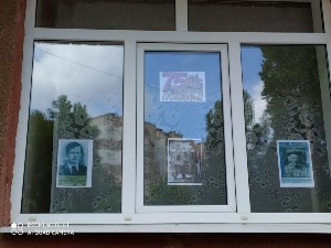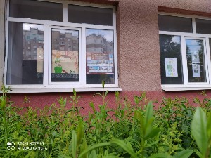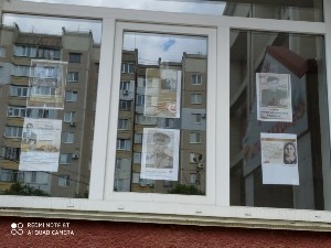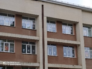 Окна нашей школы украшены материалами, творческими работами и рисунками учащихся.