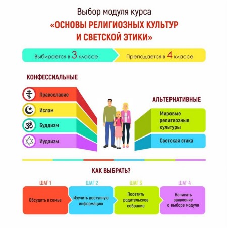 Обращаем Ваше внимание, что выбор модуля, который будет изучать в 4 классе Ваш ребёнок — исключительно право Вашей семьи, только Ваше право!